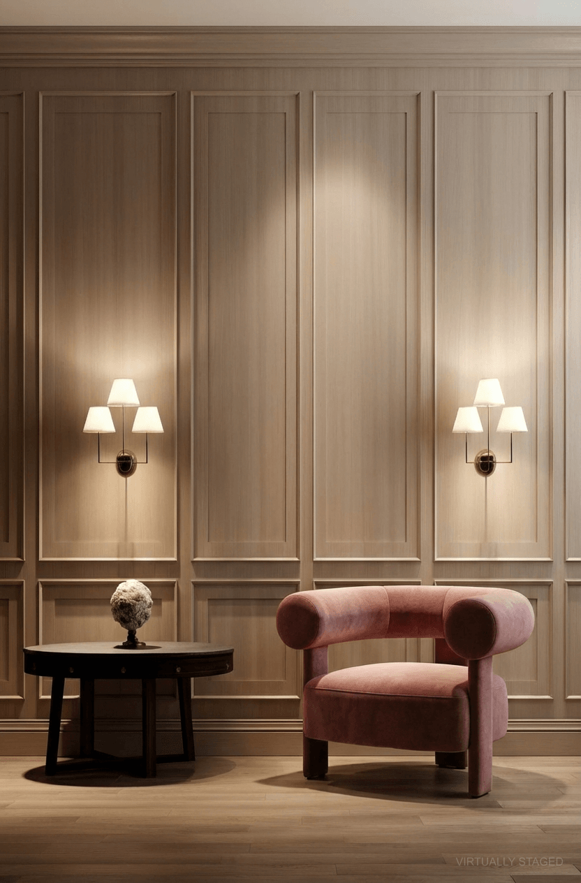 Apply colors and finishes from a reference room. This tool updates walls, surfaces, and accents to match the reference while maintaining material realism and balanced contrast.