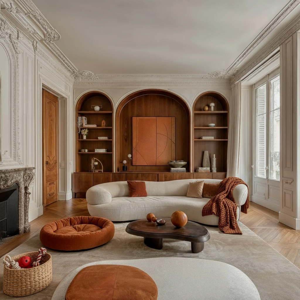 Adapt your room for pets. This tool adjusts materials and layout to handle scratches, spills, and movement while keeping the space practical and visually consistent.