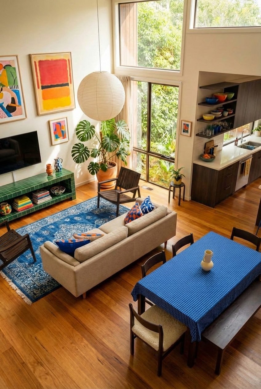 Turn a moodboard into a fully realized interior render. This tool extracts style, color, and material cues from your moodboard to generate a cohesive room design.