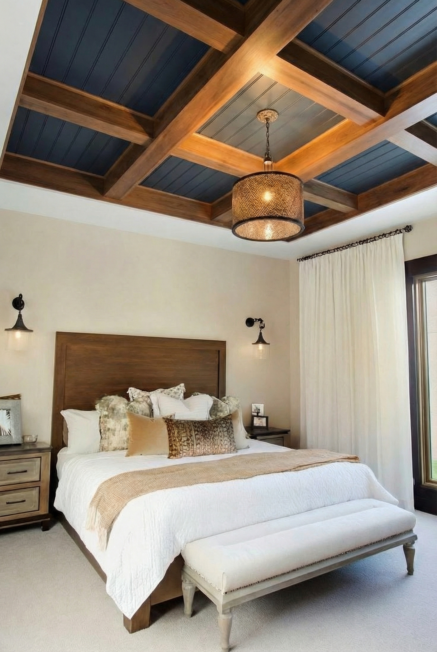 Redesign your ceiling by uploading a reference image. This tool updates the ceiling while preserving existing light fixtures and maintaining balanced brightness across the space.